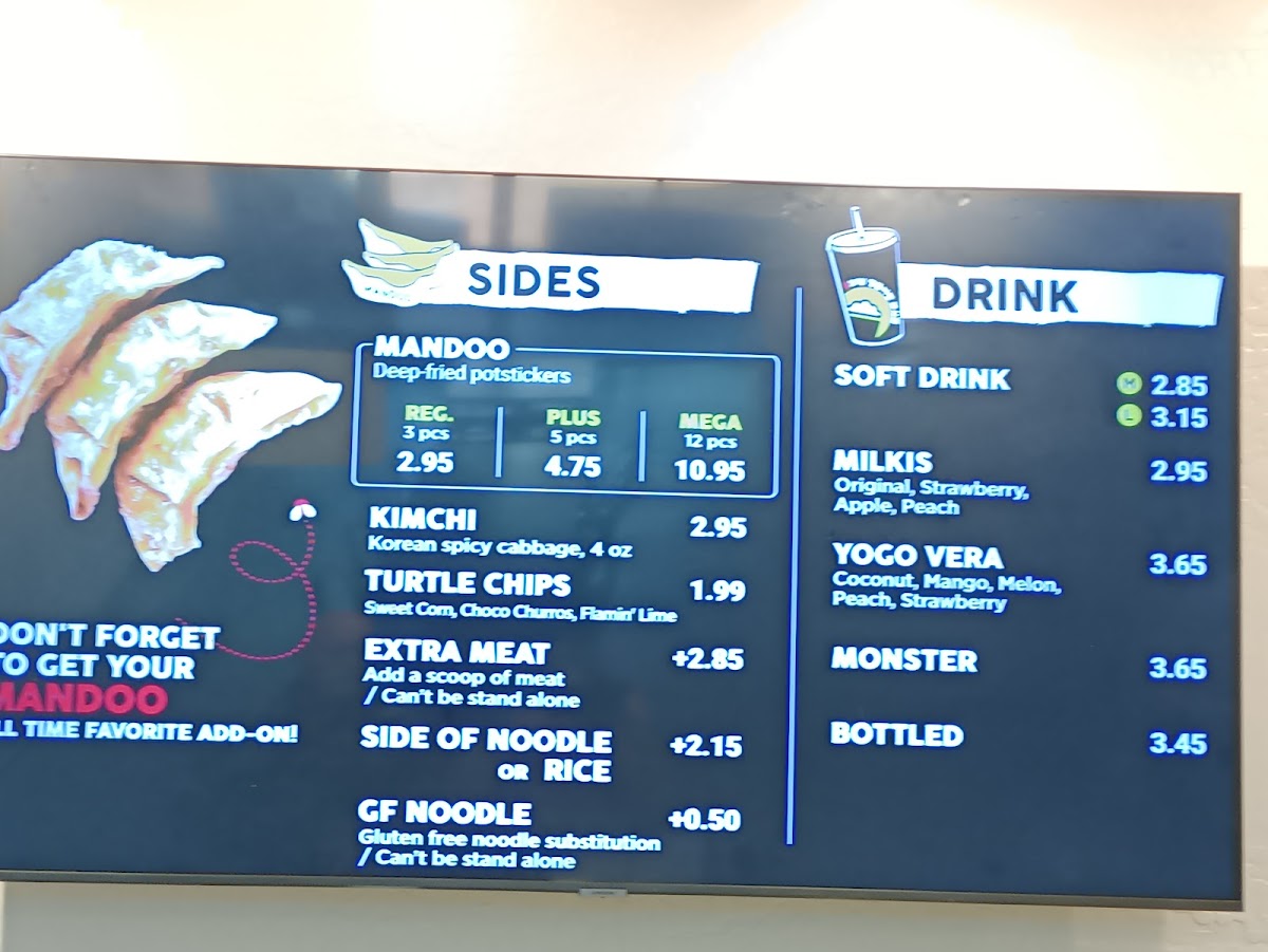 - Sides: Enhance your meal with Turtle Chips or Mandoo for a delightful crunch.